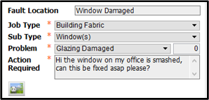 2) The next step is to enter all the information regarding the issue you are reporting. Using the Job Type, Sub Type and problem drop downs, you can build up a quick profile of the issue. In the action required box, click to open the dialog window and enter any further information that would be helpful. Should this request be an asset maintenance record, the asset name will display in the relative field. A priority marker will also need to be chosen – this signifies how urgent the request is. The priority due date will display immediately to the left hand side.